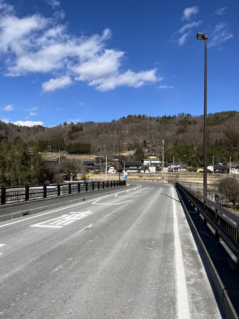 再び釜無川を渡り、正面のジグザグ道を上っていきます。