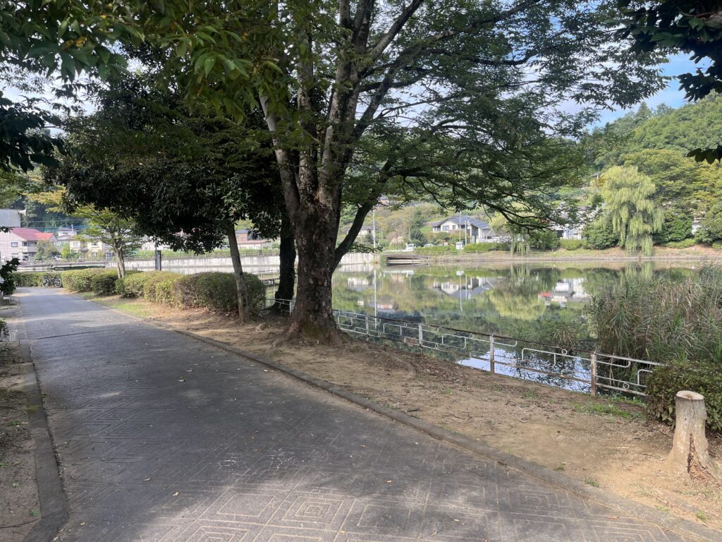 わたくしはサイクルハウスイシダさんご一行が到着するまで池の前で休憩・・・