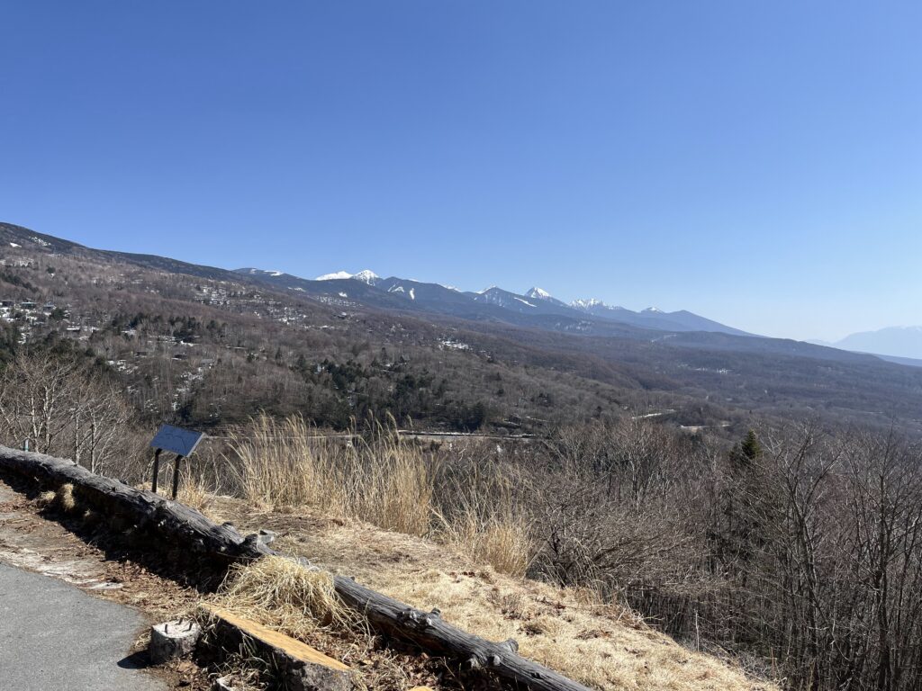 展望台で蓼科側を見渡しますが、雪はほとんど無さそうですね。
