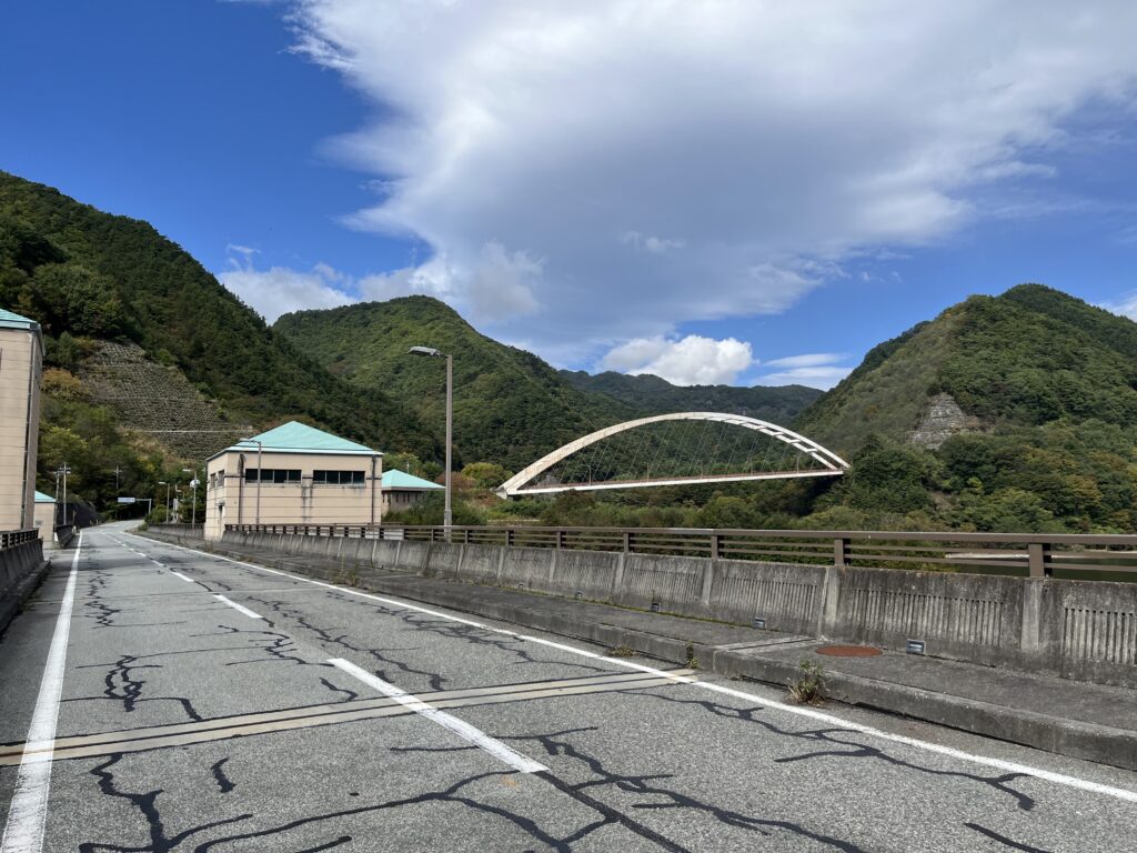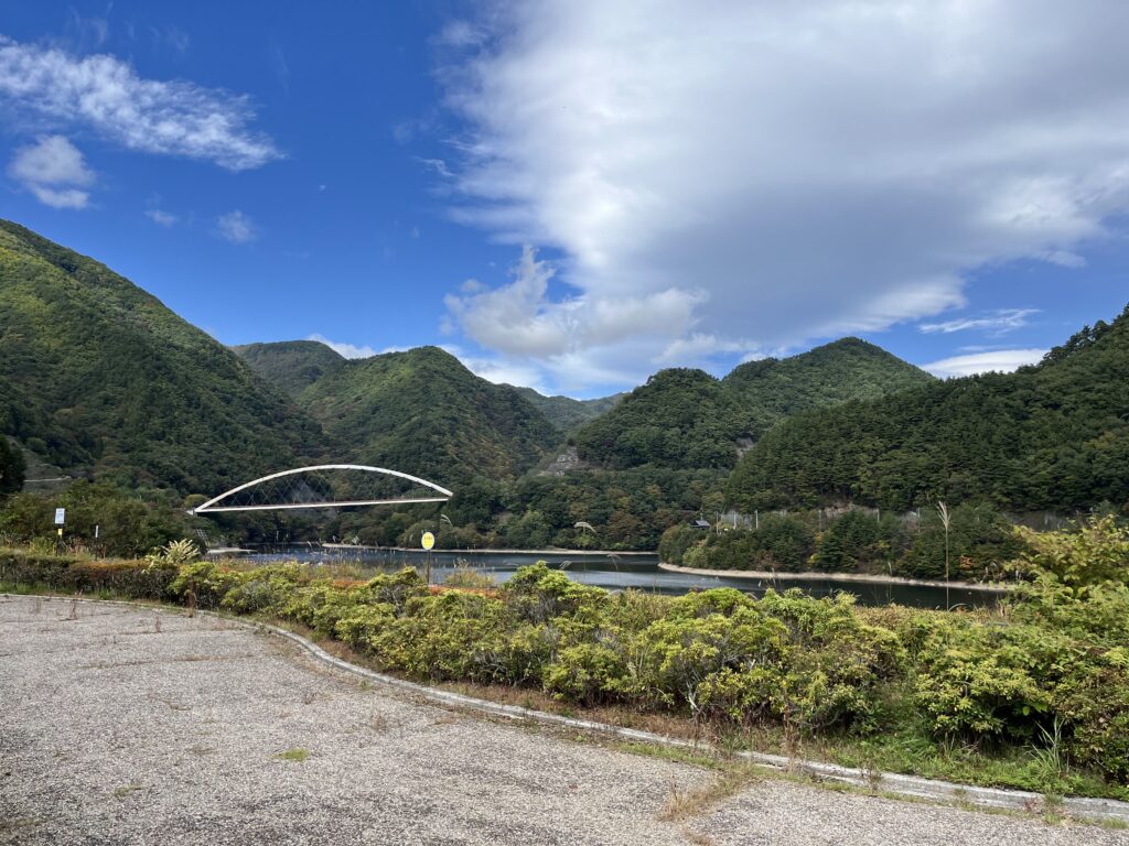 アーチ橋や駐車場の雰囲気が、どこか奥多摩を思わせるような風景です。