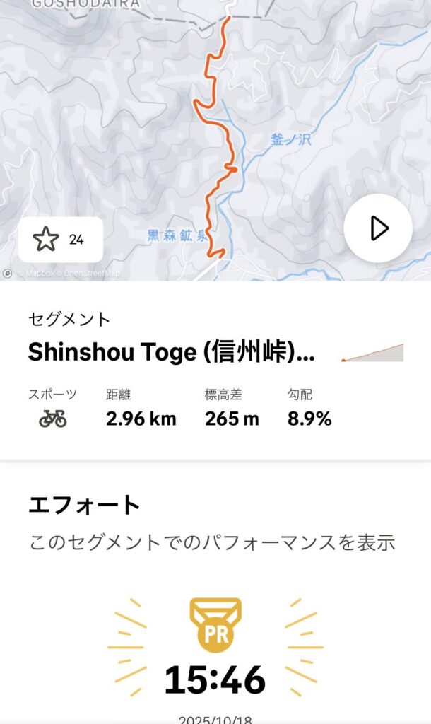 この先の信州峠はセグメントを見ていても人気があり、ここで休憩する人達も多いのでしょうか。